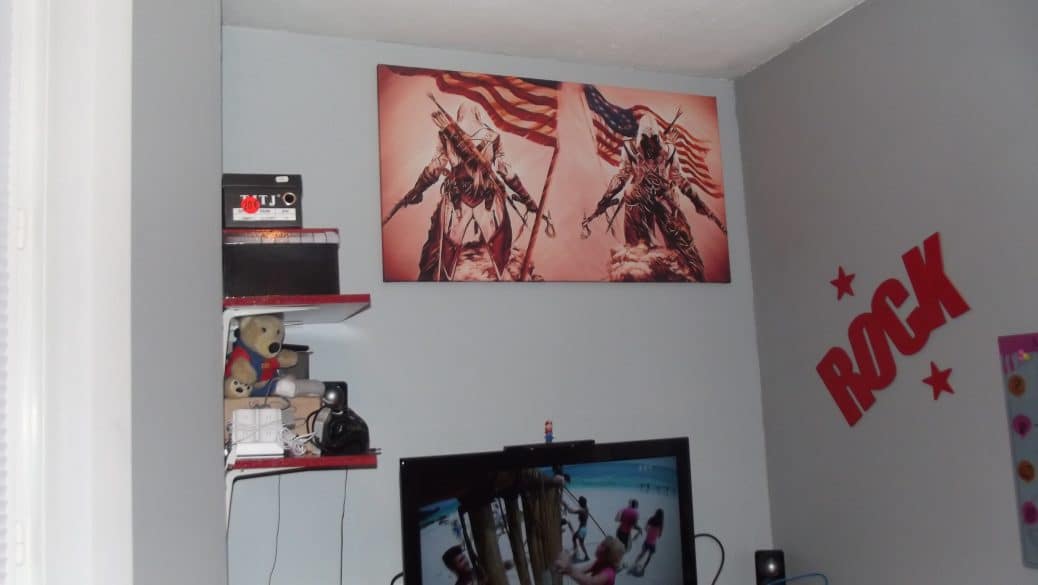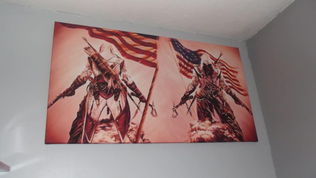 Et pour cause, une toile de 110×60 centimètres avec comme motif un sublime ArtWork Assassin’s Creed III que vous découvrirez plus bas !