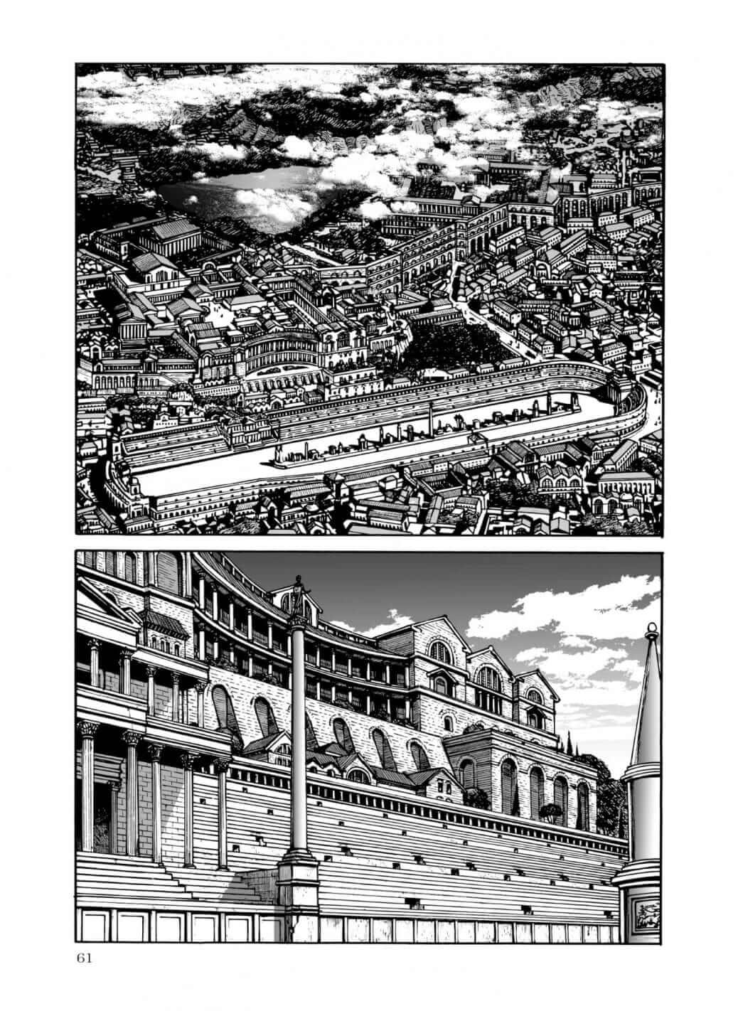 Les dessins, que dire, c’est beau ! TOKI Muri & Mari YAMAZAKI nous dévoilent ici tout leur talent avec un trait sombre mais précis et détaillé. Les visages sont expressifs. On retrouve dans les yeux de Pline tout sa malice et sa passion pour l’univers et les choses qui l’entourent. Je ne vous parle même pas des décors de la Rome Antique … On notera au fil des chapitre une nette évolution de la netteté du dessin. En effet, les deux mangakas se partagent les tâches et s’améliorent au fur et à mesure. Le trait devient plus fin, les visages plus détaillé et les expressions plus précises. C’est toujours agréable, je trouve, de voir l’évolution d’un auteur tout au long de son récit.